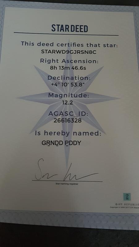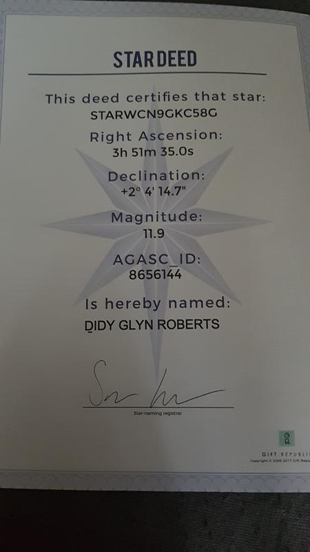 Upon receiving the tin, your loved one can register their star via a quick and easy online registration and will receive a deed certificate that makes everything official within 28 days. Plus, their unique star will be kept on record at the British Library. Due to the number of stars in the night sky, there is a possibility your star will not be visible, however with your starβs co-ordinates, it is possible to research your star and plot its location.