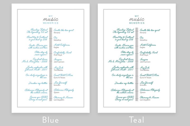 Personalise with 10 memorable songs that equate to the memories, using a maximum of 30 characters.